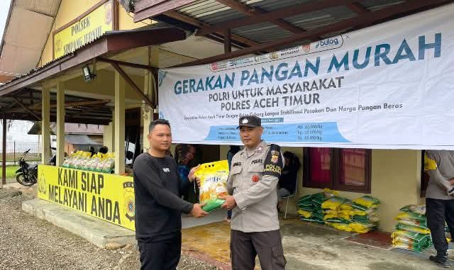Sebanyak empat ton beras Stabilisasi Pasokan dan Harga Pangan (SPHP) habis terjual hanya dalam hitungan jam saat Gerakan Pangan Murah (GPM) di Polsek Simpang Jernih, Polres Aceh Timur, Polda Aceh, Senin, (15/09/2025). Beras mulai dijual pukul 08.00 WIB, dalam waktu kurang dari tiga jam, beras yang dijual seharga Rp 60 ribu per sak kemasan lima kilogram habis terjual.