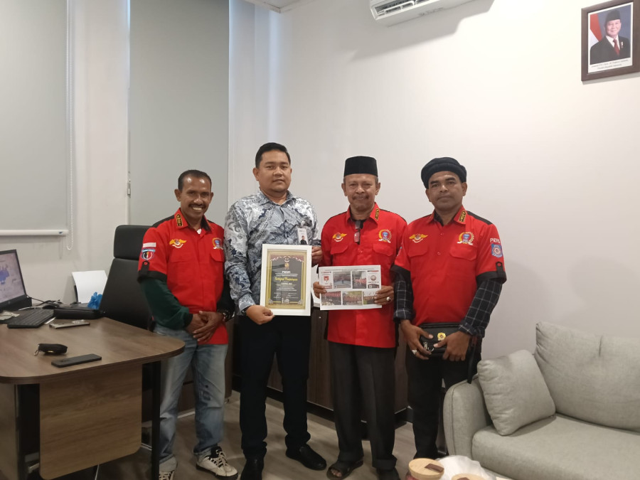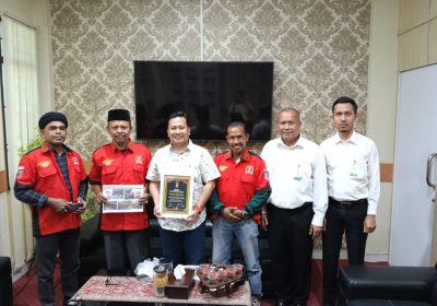 Fakhrul Razi kepala BSI KCP Seuneubok Rambong Idi Rayeuk menerima piagam penghargaan serta pin berupa tas STNK dari ketua dan anggota organisasi pers persatuan wartawan Duta Pena Indonesia pwdpi Aceh Timur di ruang kerjanya pada Senin tanggal 6/10/2025 yang diserahkan oleh salah seorang anggota pwdpi bernama Ismail dan di temani oleh ketua nya Tarmizi serta Gusyik Rusli.